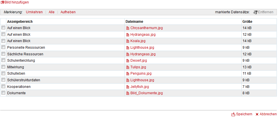 Sie können das Schulporträt durch eigene Bilder im .jpg oder .gif Format ergänzen, wobei das .jpg Format