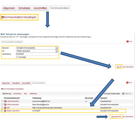Speichern Button unterhalb der Liste werden Ihre Eingaben gespeichert und im Schulporträt sichtbar.