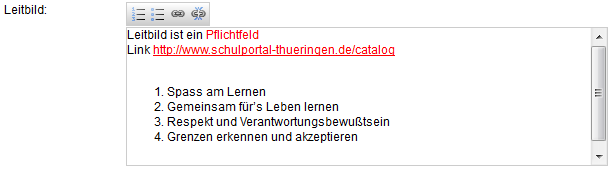 Zur besseren Übersicht können innerhalb des Leitbildfeldes Aufzählungen eingefügt werden.