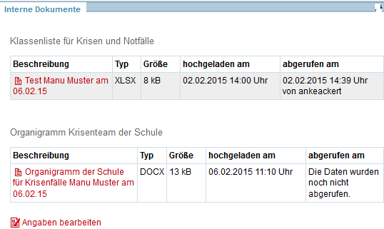 Der Navigationspunkt "Interne Dokumente" und die dort enthaltenen Daten sind nur sichtbar, wenn sich ein Nutzer mit den enstsprechenden Zugangsdaten für die Dienststelle angemeldet hat.