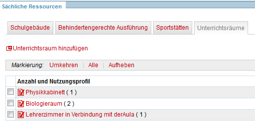 Beispiel (Reiter "Unterrichtsräume")