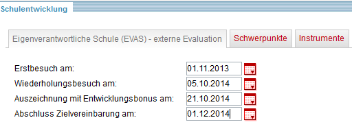 Beispiel (Reiter "Eigenverantwortliche Schule (EVAS) - externe Evaluation")