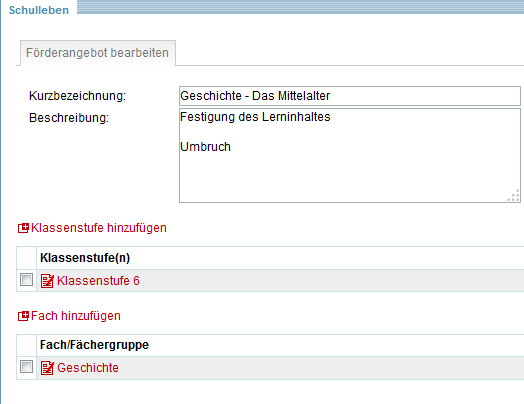 Klassenstufen und Fach/Fächergruppe  werden identisch zur oberen Beschreibung bearbeitet.