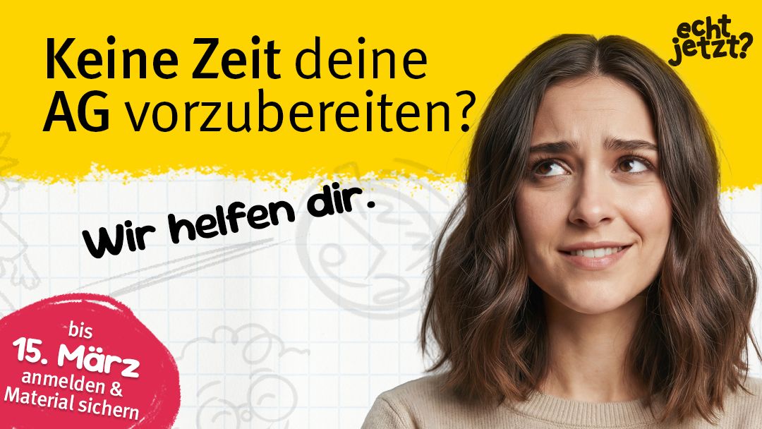 Nur bis 15. März 2026: kostenlos anmelden und passende Gruppensätze unseres „echt jetzt?“ Magazins geschenkt bekommen.