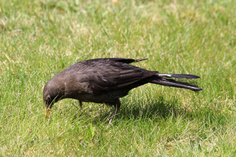 Das Foto hehört zur Serie "Amseln". Es zeigt eine Amsel (Turdus merula), auch Schwarzdrossel genannt, eine Vogelart der Familie der Drosseln. Die Männchen sind schwarz gefärbt und haben einen gelben Schnabel, das Gefieder der Weibchen ist größtenteils dunkelbraun. Es gelten die Nutzungsbedingungen der Mediothek und Pixiothek.