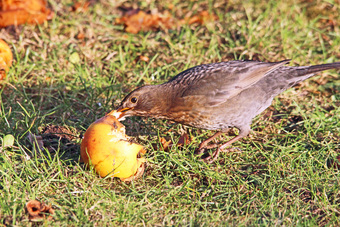 Das Foto hehört zur Serie "Amseln". Es zeigt eine Amsel (Turdus merula), auch Schwarzdrossel genannt, eine Vogelart der Familie der Drosseln. Die Männchen sind schwarz gefärbt und haben einen gelben Schnabel, das Gefieder der Weibchen ist größtenteils dunkelbraun. Es gelten die Nutzungsbedingungen der Mediothek und Pixiothek.