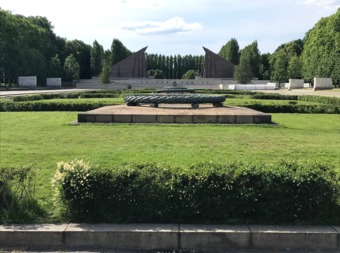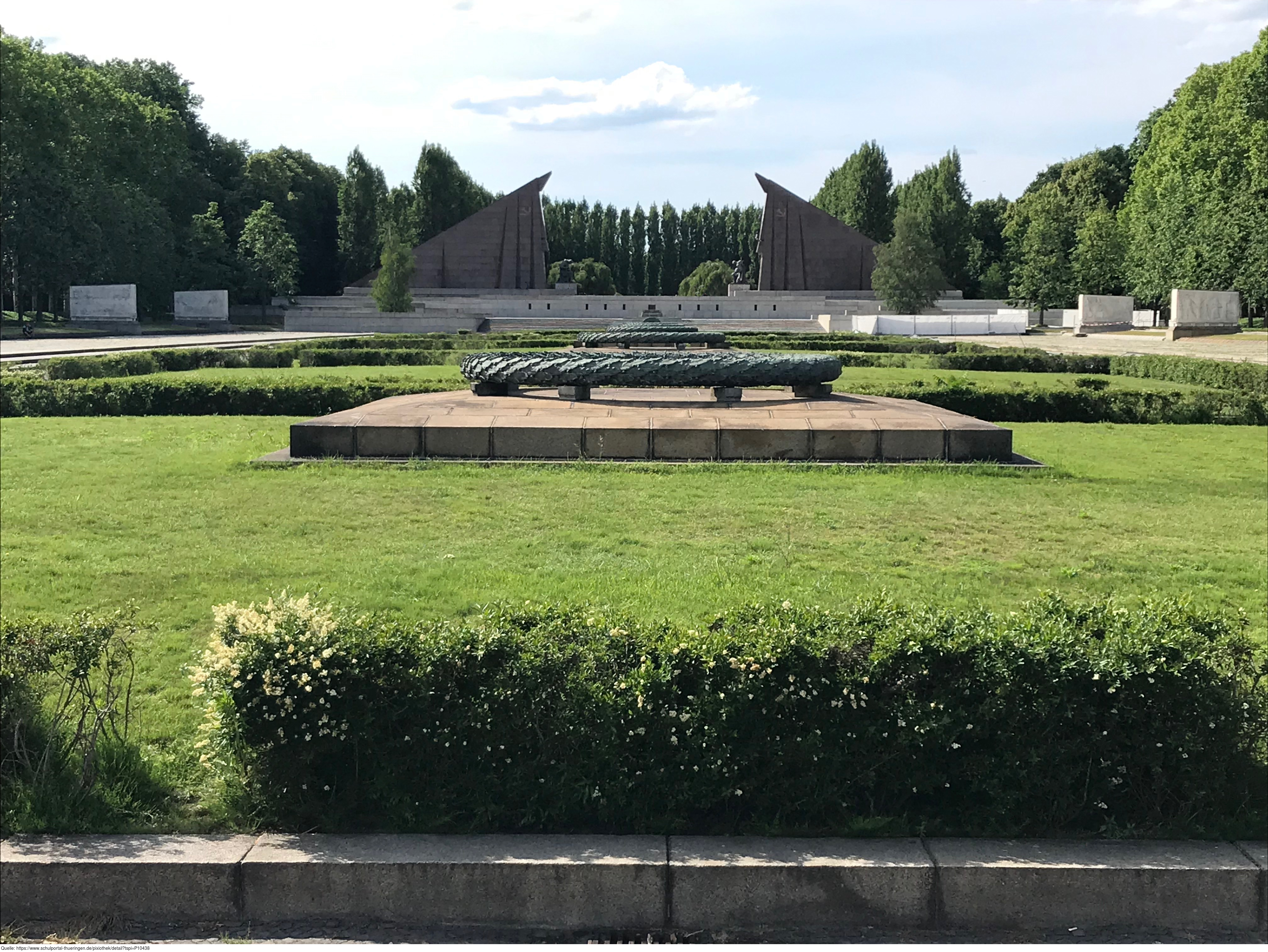 Das Sowjetische Ehrenmal ist eine Gedenkstätte und ein Soldatenfriedhof im Treptower Park in Berlin. Die im Mai 1949 fertiggestellte Anlage wurde auf Weisung der Sowjetischen Militäradministration in Deutschland errichtet, um die im Zweiten Weltkrieg gefallenen Soldaten der Roten Armee zu ehren. Es wurden ca. 7000 der in der Schlacht um Berlin gefallenen Soldaten hier bestattet. Ein breit angelegter, leicht ansteigender und von „trauernden“ Birken gesäumter Weg führt zum Hauptfeld der Gedenkstätte. Der Weg ist markiert durch zwei große, stilisierte Fahnen. An ihrer Stirnseite befindet sich jeweils die Skulptur eines knienden Soldaten in voller Montur und mit einer Maschinenpistole bewaffnet. Sechzehn weiße Sarkophage stehen entlang der äußeren Begrenzung. Sie sind auf den beiden Längsseiten mit Reliefs aus der Geschichte des Großen Vaterländischen Krieges der Sowjetvölker versehen und tragen auf der dem zentralen Feld zugewandten Schmalseite Zitate von Josef Stalin. Der zentrale Ort der Anlage wird durch eine auf einem Sockel stehende Skulptur „Der Befreier“ von Jewgeni Wutschetitsch gebildet. Die Figur stellt einen Soldaten dar, der in der rechten Hand ein Schwert und auf dem linken Arm schützend ein Kind trägt; ein Hakenkreuz zerbricht unter seinen Stiefeln. Die Skulptur ist 12 Meter hoch und 70 Tonnen schwer.