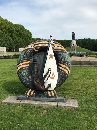 Das Sowjetische Ehrenmal ist eine Gedenkstätte und ein Soldatenfriedhof im Treptower Park in Berlin. Die im Mai 1949 fertiggestellte Anlage wurde auf Weisung der Sowjetischen Militäradministration in Deutschland errichtet, um die im Zweiten Weltkrieg gefallenen Soldaten der Roten Armee zu ehren. Es wurden ca. 7000 der in der Schlacht um Berlin gefallenen Soldaten hier bestattet. Ein breit angelegter, leicht ansteigender und von „trauernden“ Birken gesäumter Weg führt zum Hauptfeld der Gedenkstätte. Der Weg ist markiert durch zwei große, stilisierte Fahnen. An ihrer Stirnseite befindet sich jeweils die Skulptur eines knienden Soldaten in voller Montur und mit einer Maschinenpistole bewaffnet. Sechzehn weiße Sarkophage stehen entlang der äußeren Begrenzung. Sie sind auf den beiden Längsseiten mit Reliefs aus der Geschichte des Großen Vaterländischen Krieges der Sowjetvölker versehen und tragen auf der dem zentralen Feld zugewandten Schmalseite Zitate von Josef Stalin. Der zentrale Ort der Anlage wird durch eine auf einem Sockel stehende Skulptur „Der Befreier“ von Jewgeni Wutschetitsch gebildet. Die Figur stellt einen Soldaten dar, der in der rechten Hand ein Schwert und auf dem linken Arm schützend ein Kind trägt; ein Hakenkreuz zerbricht unter seinen Stiefeln. Die Skulptur ist 12 Meter hoch und 70 Tonnen schwer.