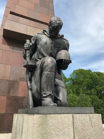 Das Sowjetische Ehrenmal ist eine Gedenkstätte und ein Soldatenfriedhof im Treptower Park in Berlin. Die im Mai 1949 fertiggestellte Anlage wurde auf Weisung der Sowjetischen Militäradministration in Deutschland errichtet, um die im Zweiten Weltkrieg gefallenen Soldaten der Roten Armee zu ehren. Es wurden ca. 7000 der in der Schlacht um Berlin gefallenen Soldaten hier bestattet. Ein breit angelegter, leicht ansteigender und von „trauernden“ Birken gesäumter Weg führt zum Hauptfeld der Gedenkstätte. Der Weg ist markiert durch zwei große, stilisierte Fahnen. An ihrer Stirnseite befindet sich jeweils die Skulptur eines knienden Soldaten in voller Montur und mit einer Maschinenpistole bewaffnet. Sechzehn weiße Sarkophage stehen entlang der äußeren Begrenzung. Sie sind auf den beiden Längsseiten mit Reliefs aus der Geschichte des Großen Vaterländischen Krieges der Sowjetvölker versehen und tragen auf der dem zentralen Feld zugewandten Schmalseite Zitate von Josef Stalin. Der zentrale Ort der Anlage wird durch eine auf einem Sockel stehende Skulptur „Der Befreier“ von Jewgeni Wutschetitsch gebildet. Die Figur stellt einen Soldaten dar, der in der rechten Hand ein Schwert und auf dem linken Arm schützend ein Kind trägt; ein Hakenkreuz zerbricht unter seinen Stiefeln. Die Skulptur ist 12 Meter hoch und 70 Tonnen schwer.