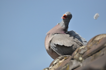 Das Foto gehört zur Serie "Tauben". Es zeigt eine scheinbar lachende Straßentaube auf dem Dach. Die Stadttaube oder Straßentaube ist ein Vogel aus der Familie der Tauben (Columbidae). Sie stammt von verwilderten Haus- und Brieftauben ab, die aus der Felsentaube (Columba livia) gezüchtet wurden. Das Bild ist unter CC0 lizenziert und kann somit frei verwendet werden.