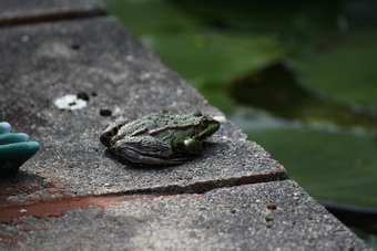 Teichfrosch auf der Mauer