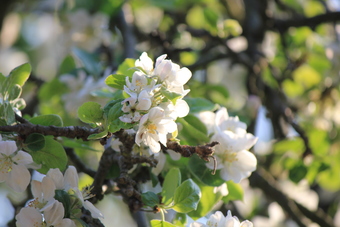 Das Foto gehört zur Serie "Obstbäume". Es zeigt Blüten an einem Apfelbaum. Das Bild ist unter CC0 lizenziert und kann somit frei verwendet werden.