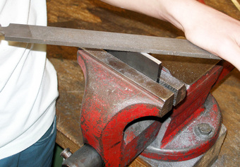 Das Bild gehört zur Serie "Werkzeuge". Es zeigt die Verwendung einer Flachfeile beim Bearbeiten einer im Schraubstock eingespannten Metallplatte. Das Bild ist unter CC0 lizenziert und kann somit frei verwendet werden.