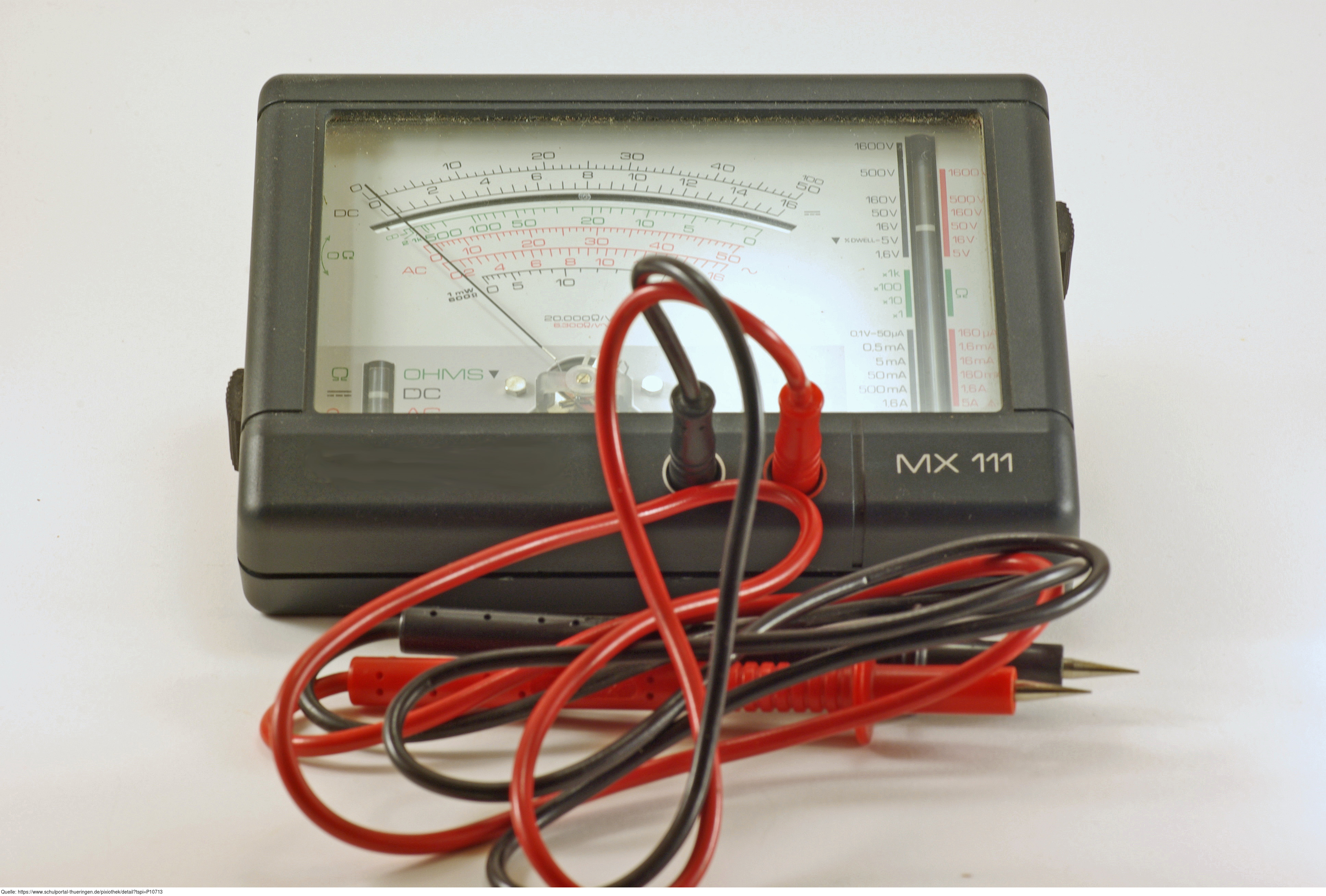 Das Foto gehört zur Serie "Elektrik". Es zeigt ein analoges Multimeter, ein Messgerät für Stromstärke, Spannung elektrischen widerstand,.... Das Bild ist unter CC0 lizenziert und kann somit frei verwendet werden.
