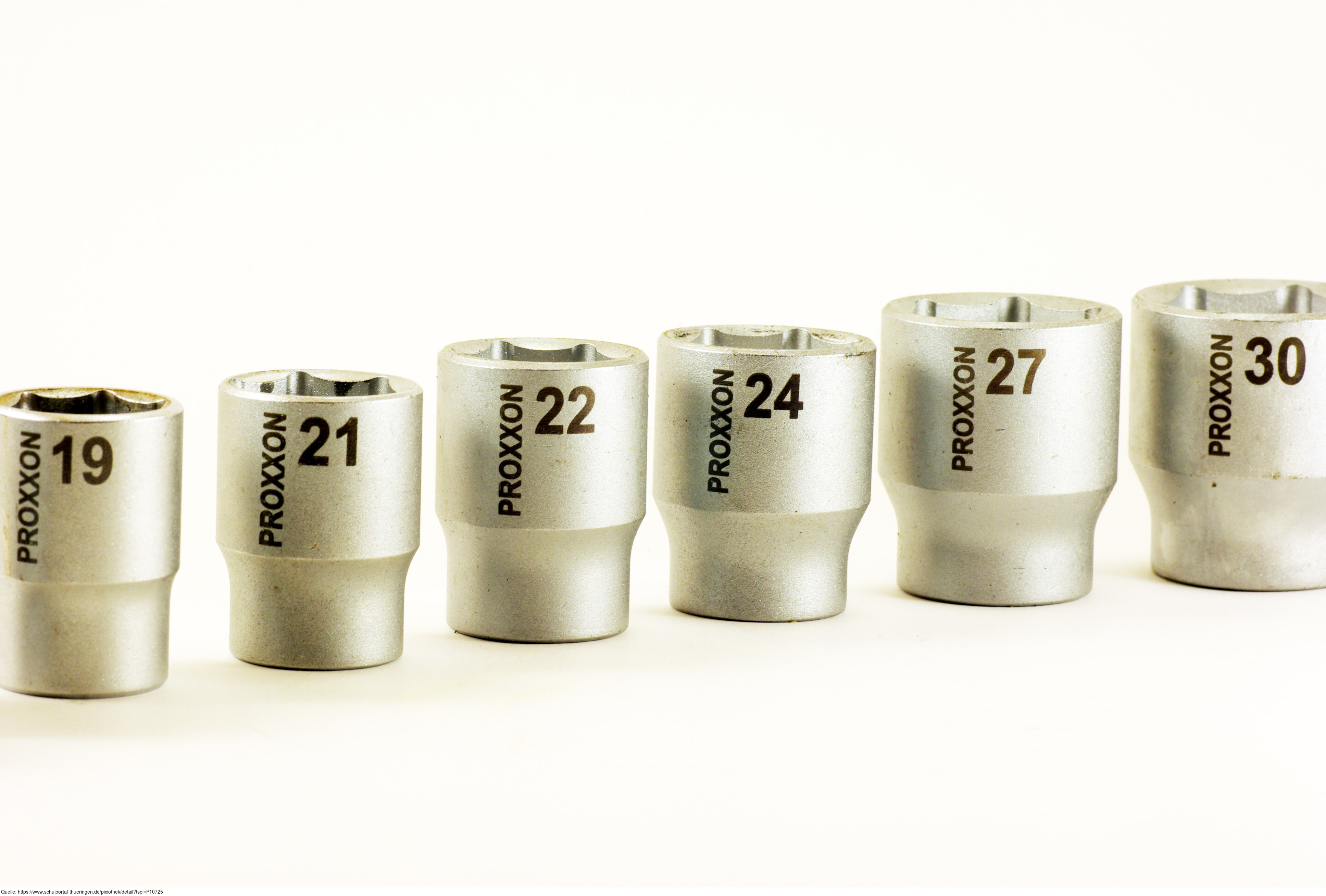 Das Bild gehört zur Serie "Werkzeuge". Es zeigt Steckschlüssel (Nüsse) für eine Ratsche (Knarre) zum Lösen oder Festziehen von Schraubverbindungen. Das Bild ist unter CC0 lizenziert und kann somit frei verwendet werden.