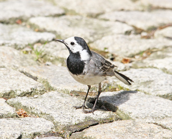 Das Foto gehört zur Serie "Stelzen und Pieper". Es zeigt eine Bachstelze (Motacilla alba). Sie fällt durch ihr kontrastreiches, schwarz-weiß-graues Gefieder und den stelzentypischen Wippschwanz auf. Es gelten die Nutzungsbedingungen der Mediothek und Pixiothek.