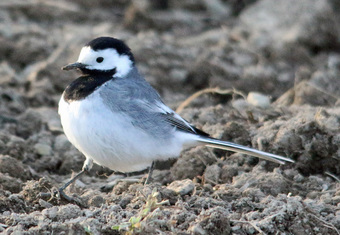 Das Foto gehört zur Serie "Stelzen und Pieper". Es zeigt eine Bachstelze (Motacilla alba). Sie fällt durch ihr kontrastreiches, schwarz-weiß-graues Gefieder und den stelzentypischen Wippschwanz auf. Es gelten die Nutzungsbedingungen der Mediothek und Pixiothek.
