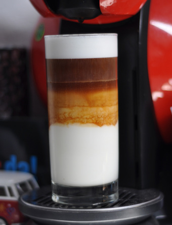 Das Foto gehört zur Serie "Kaffee". Es zeigt ein Glas Latte Macchiato, ein Warmgetränk aus Milch und Espresso. Das Bild ist unter CC0 lizenziert und kann somit frei verwendet werden.