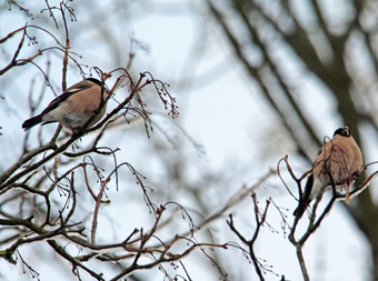Das Foto hehört zur Serie "Finken". Es zeigt weibliche Gimpel (Pyrrhula pyrrhula), auch Dompfaff oder Blutfink genannt. Der Gimpel ist eine Vogelart aus der Unterfamilie der Stieglitzartigen und der Familie der Finken. Es gelten die Nutzungsbedingungen der Mediothek und Pixiothek.