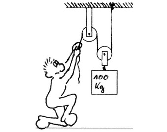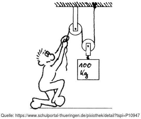 Das Bild gehört zur Serie "Paul". Es zeigt Paul, der mit fester und loser Rolle eine Masse von 100 kg anhebt. Das Bild ist unter CC0 lizenziert und kann somit frei verwendet werden.