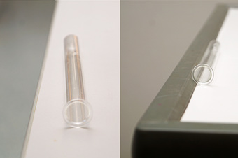 Reagenzglas und Randerhöhung am Tisch