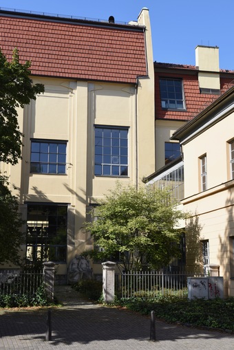 Das Foto gehört zur Serie "Bauhaus in Weimar". Im Zeitrahmen 1904 bis 1911 wurde nach Plänen Henry van de Veldes die Kunstgewerbeschule und später der Hochschulbau für Bildende Kunst in Weimar errichtet (heutiges Hauptgebäude der Bauhaus-Universität Weimar). Es ist eines der bedeutendsten Kunstschulbauten der Jahrhundertwende und war 1919 Gründungsort des von Walter Gropius ins Leben gerufene Staatlichen Bauhauses. Nach Art und Konzeption war es in dieser Zeit etwas völlig Neues, da das Bauhaus eine Zusammenführung von Kunst und Handwerk darstellte. Es gelten die Nutzungsbedingungen der Mediothek und Pixiothek.