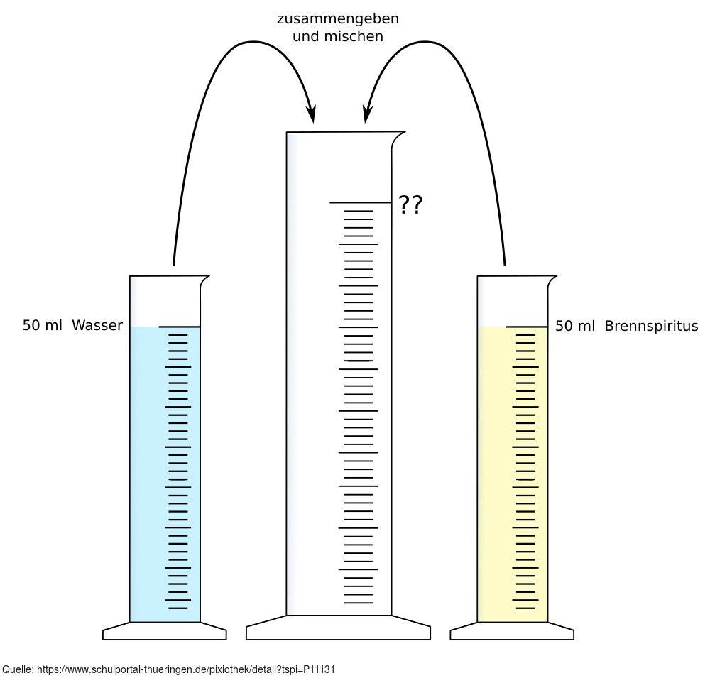 Das Bild gehört zur Serie "Chemie Grafiken". Es veranschaulicht ein Experiment zur Volumenbetrachtung beim Mischen von Aklohol und Wasser. Die Grafik kann zur Gestaltung von Arbeitsblättern verwendet werden. Das Bild ist unter CC0 lizenziert und kann somit frei verwendet werden.