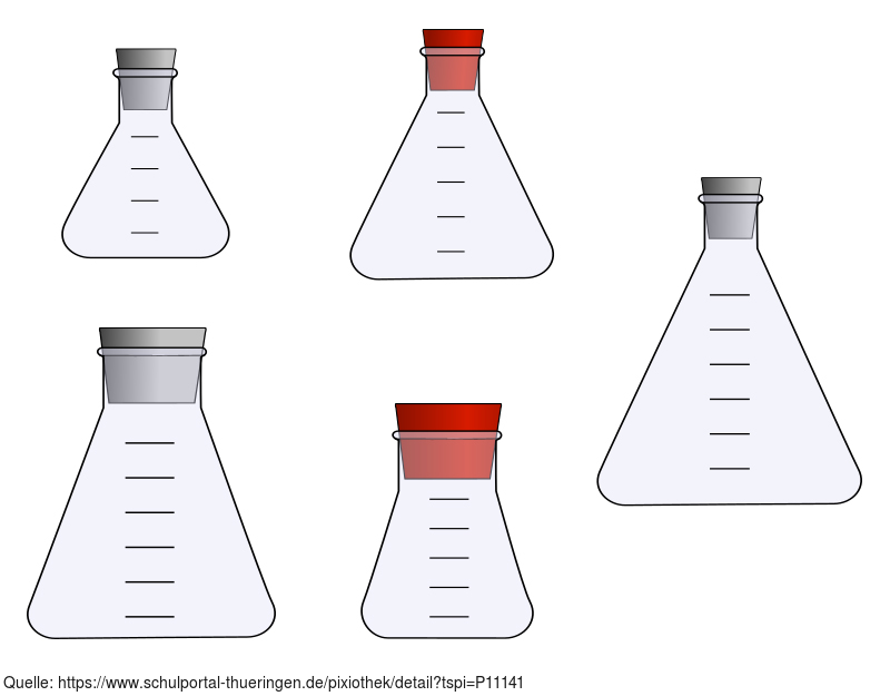 Das Bild gehört zur Serie "Chemie Grafiken". Es zeigt Grafiken von Erlenmeyerkolben ohne Schliff für die Gestaltung von Arbeitsblättern. Das Bild ist unter CC0 lizenziert und kann somit frei verwendet werden.