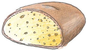 Das Bild gehört zur Serie "Nahrungsmittel". Es zeigt ein gezeichnetes halbes Brot. Es gelten die Nutzungsbedingungen der Mediothek und Pixiothek.