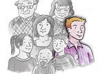 Das Bild gehört zur Serie "Familienmitglieder als Zeichnung". Es zeigt den Bruder im Kreise seiner Familie. Es gelten die Nutzungsbedingungen der Mediothek und Pixiothek.