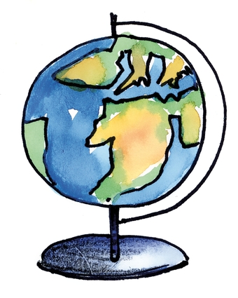 Das Bild gehört zur Serie "Schulfächer". Es zeigt einen gezeichneten Globus als Symbolbild für Erdkunde bzw. Geografie. Es gelten die Nutzungsbedingungen der Mediothek und Pixiothek.