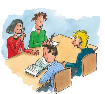Das Bild gehört zur Serie "Lernformen". Es zeigt ein gezeichnetes Symbolbild für die Lernform Gruppenarbeit. Es gelten die Nutzungsbedingungen der Mediothek und Pixiothek.