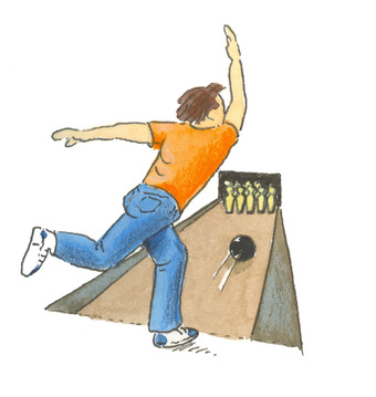 Das Bild gehört zur Serie "Sport". Es zeigt ein gezeichnetes Bild zum Kegeln. Es gelten die Nutzungsbedingungen der Mediothek und Pixiothek.