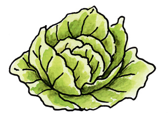 Das Bild gehört zur Serie "Gemüse". Es zeigt einen gezeichneten Kopfsalat, auch kurz Salat genannt. Es gelten die Nutzungsbedingungen der Mediothek und Pixiothek.