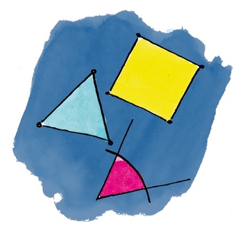Das Bild gehört zur Serie "Mathematik Geometrie". Es zeigt ein gezeichnetes Symbolbild für die Ebene Geometrie: Flächen und Winkel. Es gelten die Nutzungsbedingungen der Mediothek und Pixiothek.