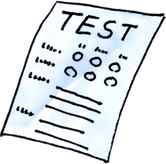 Das Bild gehört zur Serie "Unterricht". Es zeigt ein gezeichnetes Arbeitsblatt mit Aufgaben für einen Test. Es gelten die Nutzungsbedingungen der Mediothek und Pixiothek.