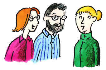 Das Bild gehört zur Serie "Unterricht". Es zeigt gezeichnete Lehrer im Gespräch. Es gelten die Nutzungsbedingungen der Mediothek und Pixiothek.