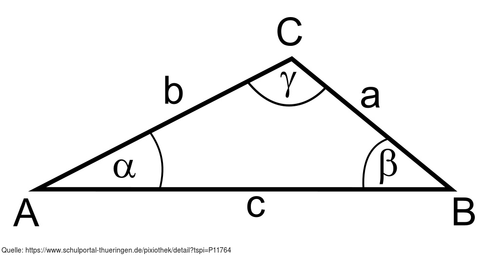Das Bild gehört zur Serie "Mathematik Geometrie". Es zeigt ein stumpfwinkliges Dreieck mit Bezeichnung der Eckpunkte, Seiten und Innenwinkel. Das Bild ist unter CC0 lizenziert und kann somit frei verwendet werden.