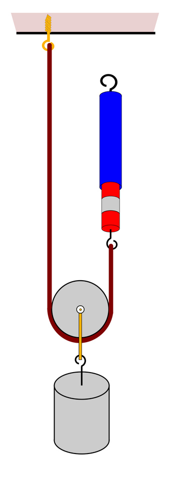 Das Bild gehört zur Serie "Physik, Mechanik". Es zeigt eine lose Rolle mit angehängtem Massenstück und Federkraftmesser. Das Bild ist unter CC0 lizenziert und kann somit frei verwendet werden.