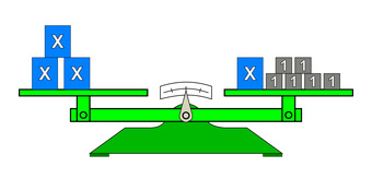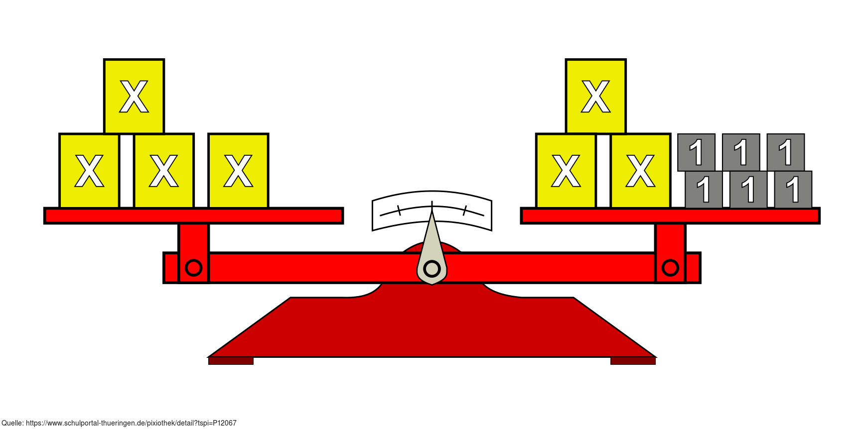 Das Bild gehört zur Serie "Mathematik, Gleichungen". Es veranschaulicht die Lösung einer linearen Gleichung durch Äquivalenzumformung mit dem Bild einer Waage. Zur Gleichung 21 veranschaulichen die Bilder 21-1 bis 21-4 die Umformungsschritte. Das Bild ist unter CC0 lizenziert und kann somit frei verwendet werden.