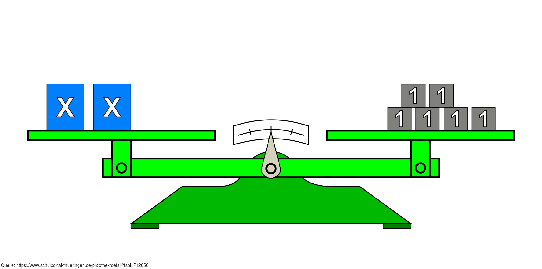 Das Bild gehört zur Serie "Mathematik, Gleichungen". Es veranschaulicht die Lösung einer linearen Gleichung durch Äquivalenzumformung mit dem Bild einer Waage. Zur Gleichung 21 veranschaulichen die Bilder 21-1 bis 21-4 die Umformungsschritte. Das Bild ist unter CC0 lizenziert und kann somit frei verwendet werden.