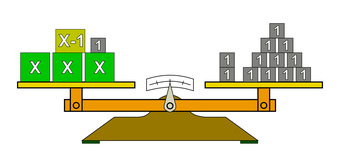 Das Bild gehört zur Serie "Mathematik, Gleichungen". Es veranschaulicht die Lösung einer linearen Gleichung durch Äquivalenzumformung mit dem Bild einer Waage. Zur Gleichung 26 (5x - 1 = x + 11) veranschaulichen die Bilder 26-1 bis 26-5 die Umformungsschritte. Das Bild ist unter CC0 lizenziert und kann somit frei verwendet werden.