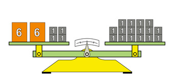 Das Bild gehört zur Serie "Mathematik, Gleichungen". Es veranschaulicht die Probe für die Lösung der linearen Gleichung 12. Durch Einsetzen der gefundenen Lösung für die Variable x entsteht im Bild auf beiden Seiten der Waage die gleiche Summe. Das Bild ist unter CC0 lizenziert und kann somit frei verwendet werden.