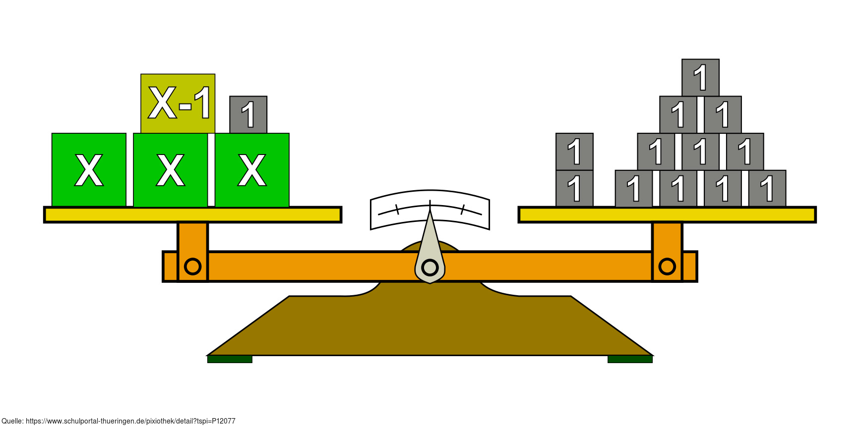 Das Bild gehört zur Serie "Mathematik, Gleichungen". Es veranschaulicht die Lösung einer linearen Gleichung durch Äquivalenzumformung mit dem Bild einer Waage. Zur Gleichung 12 veranschaulichen die Bilder 12-1 bis 12-3 die Umformungsschritte. Das Bild ist unter CC0 lizenziert und kann somit frei verwendet werden.