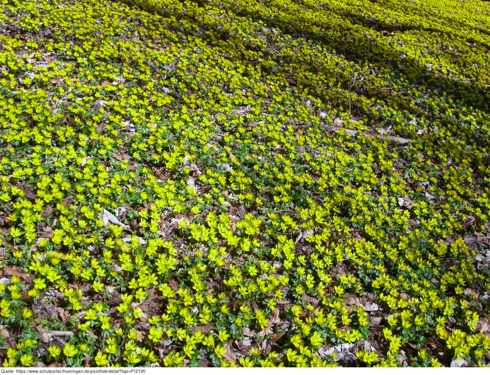 Das Foto gehört zur Serie "Frühblüher". Es zeigt Blüten vom Winterling (Eranthis hyemalis). Die Pflanzengattung Winterlinge gehört zur Familie der Hahnenfußgewächse (Ranunculaceae). Die Blütezeit reicht im Vorfrühling von Februar bis März. Es gelten die Nutzungsbedingungen der Mediothek und Pixiothek.