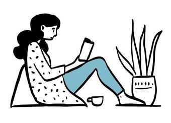Die Zeichnung "reading-side" aus der Serie "Open Doodles" zeigt eine auf dem Boden sitzende Frau, die in einem Buch liest. Das Bild ist unter CC0 lizenziert und kann somit frei verwendet werden.