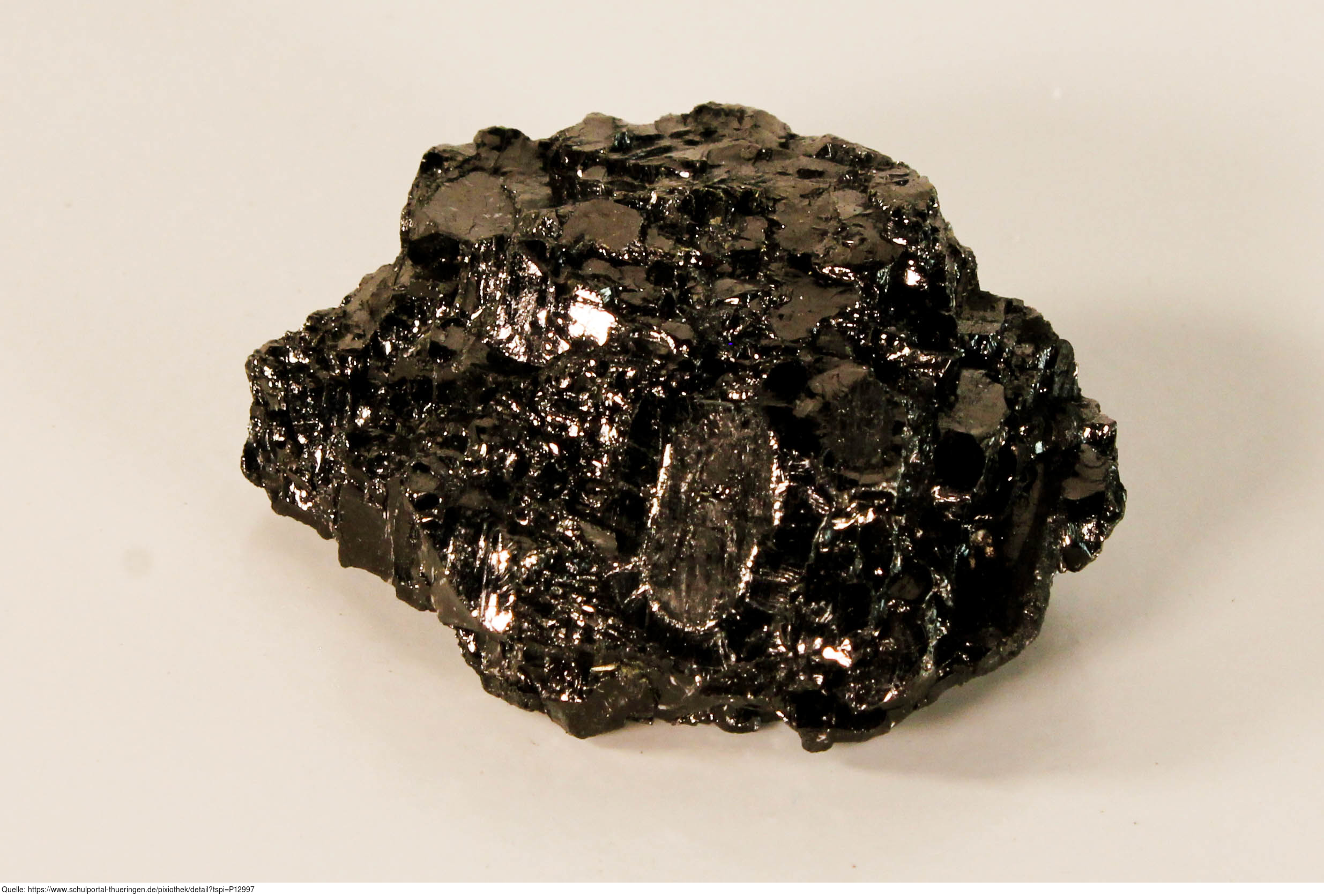 Das Bild zeigt ein Stück Anthrazit (griechisch: Glanzkohle). Anthrazit gilt als die hochwertigste Kohleart und besitzt eine große Härte. Der Kohlenstoffgehalt von Anthrazit kann bei über 90% liegen.