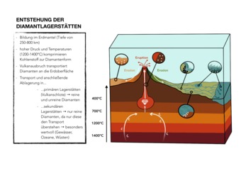 Die Abbildung verdeutlicht die Entstehung von Diamantlagerstätten. Es gelten die Nutzungsbedingungen der Mediothek und Pixiothek.