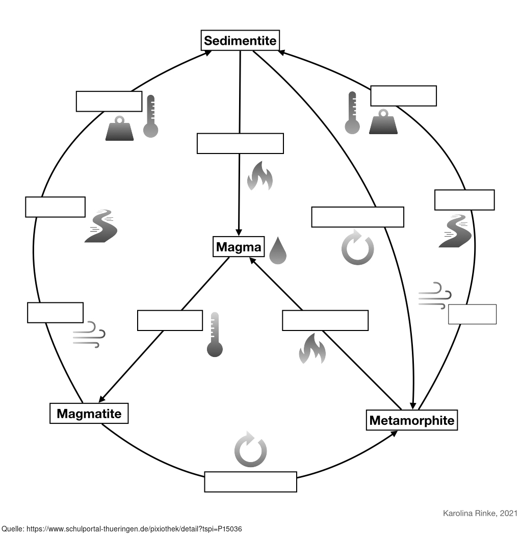 Das Bild verdeutlicht den Gesteinskreislauf. Bild-Variante: unbeschriftet; ohne Symbole. Es gelten die Nutzungsbedingungen der Mediothek und Pixiothek.