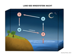 Das Bild gehört zur Serie „Zirkulationssysteme der Erde“. Es verdeutlicht das Land-See-Windsystem der Erde. Bild-Variante: farbig; unbeschriftet. Es gelten die Nutzungsbedingungen der Mediothek und Pixiothek.